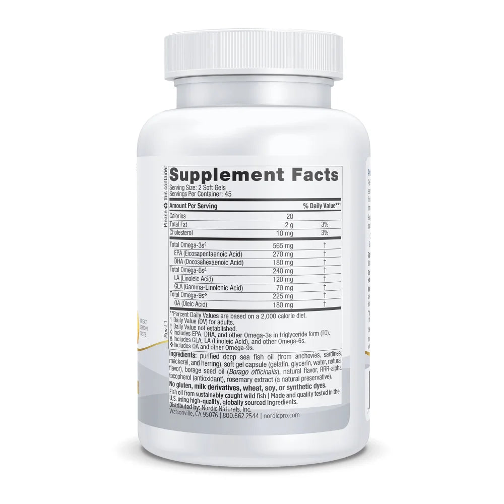 ProEFA®-3⋅6⋅9 combines nonconcentrated omega-3s EPA and DHA from fish oil with GLA from borage oil and omega-9 to provide comprehensive fatty acid support for cardiovascular health, brain function, and joint flexibility.*
