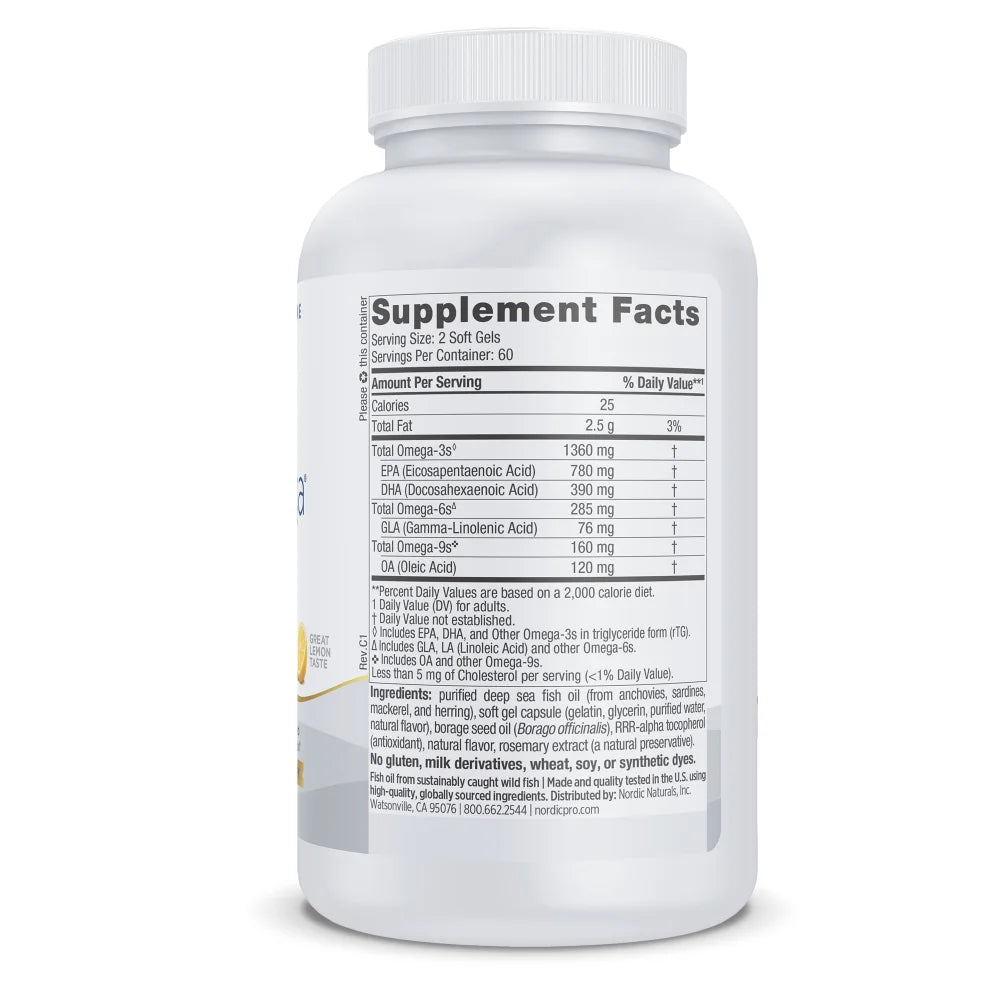 ProOmega®-3⋅6⋅9 combines concentrated omega-3s EPA and DHA from fish oil with GLA from borage oil and omega-9 to provide high-intensity, full-spectrum fatty acid support for optimal skin, cardiovascular, eye, neurological, joint, and immune health.*