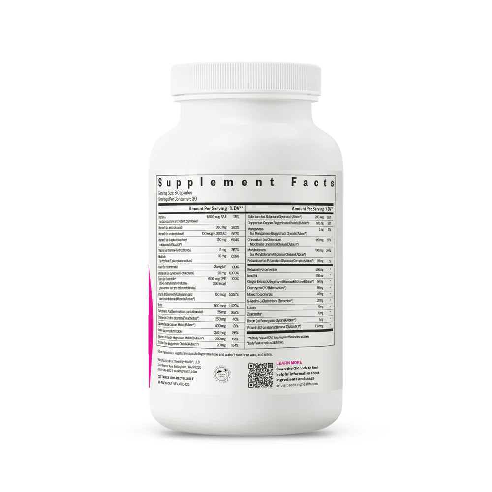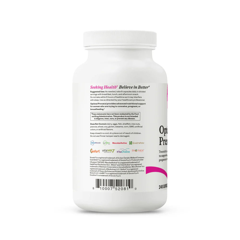 Compared to our Prenatal Essentials product line, Optimal Prenatal is a more potent and comprehensive formula. None of our Seeking Health prenatals contain iron. This makes it easy to customize your dosage by supplementing separately with a gentle form of iron. All our Seeking Health prenatal vitamins are gluten-free.