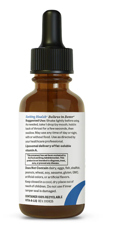 Here at Seeking Health, we understand the importance of a pure form of vitamin A. Our Vitamin A Drops provide you with high-quality retinol in a liposomal form that your body can efficiently absorb and utilize.†