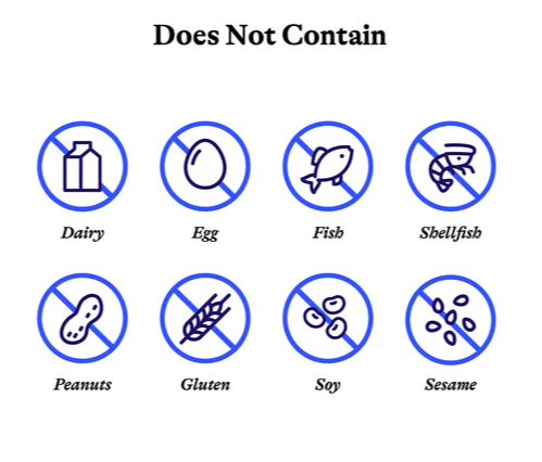 Dairy-Free, Egg-Free, No Fish Or Shellfish, No Peanuts, Wheat-Free, Gluten-Free, Soy Free, No sesame, No Artificial Colors Or Flavors