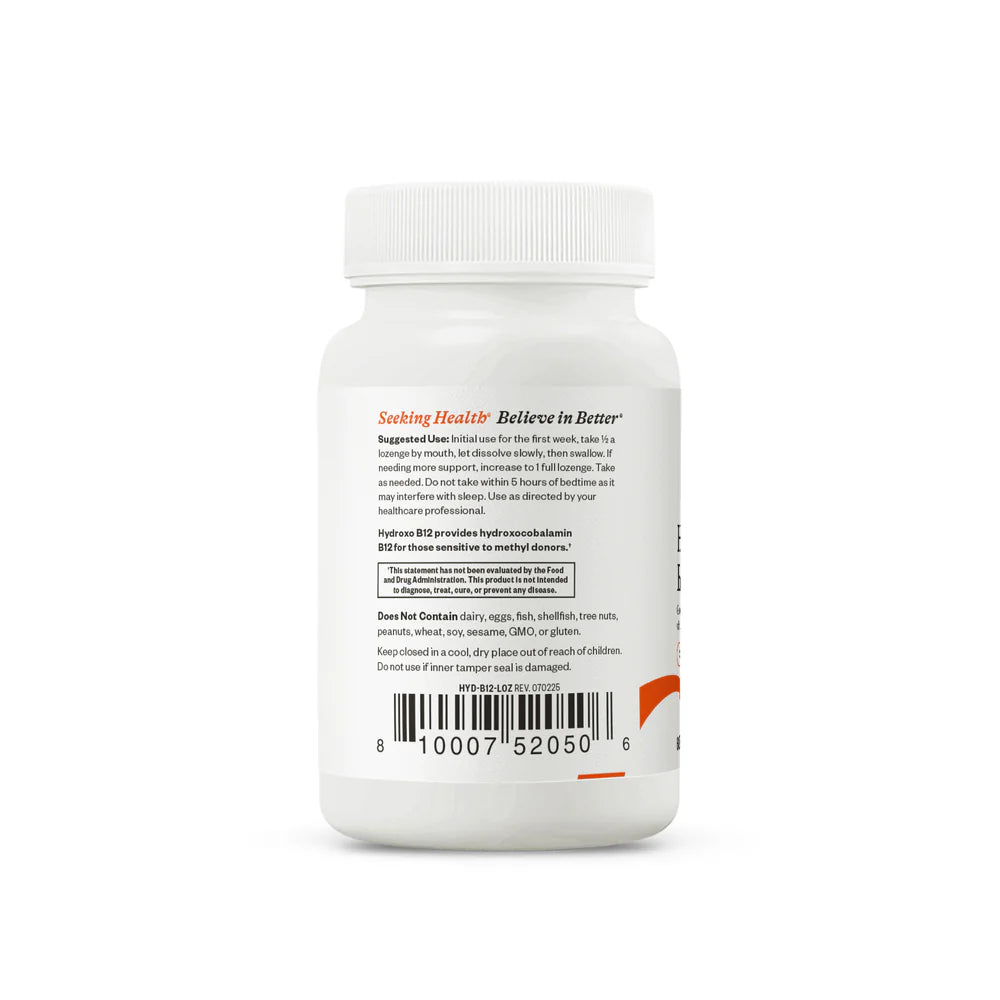 Hydroxo B12 by Seeking Health contains 2,000 mcg of hydroxocobalamin in an well-digested lozenge.†